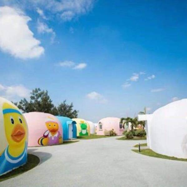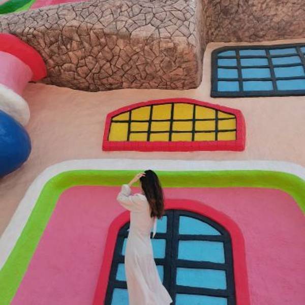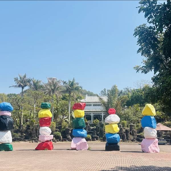 除了地质奇观,火山岛的“童话感”设计也精准戳中了年轻人的喜好。景区内散落着多个网红打卡点:“彩虹城堡”以马卡龙色为主调,尖顶、拱门搭配彩色涂鸦,随手一拍就是ins风大片;“蓝色滨海公路”紧挨着海岸线,路面干净整洁,租一辆小电驴慢悠悠骑行,海风拂面,随手定格都是治愈系画面;还有“火山岛博物馆”,外观是黑色火山岩与白色线条的碰撞,馆内陈列着火山岩标本与地质科普展,既适合拍照,又能补充知识。此外,景区内还有复古小火车、彩色热气球模型等装置,走到哪儿都能遇见“小惊喜”,情侣们在这里拍一组婚纱照,或是闺蜜们互拍打卡,出片率几乎百分百。