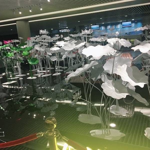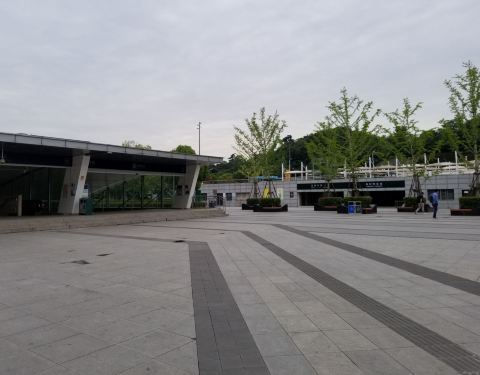南广场景色宜人,不锈钢屏风、广场花园,与车站对面的玄武湖浑然一体,给人一种美的享受