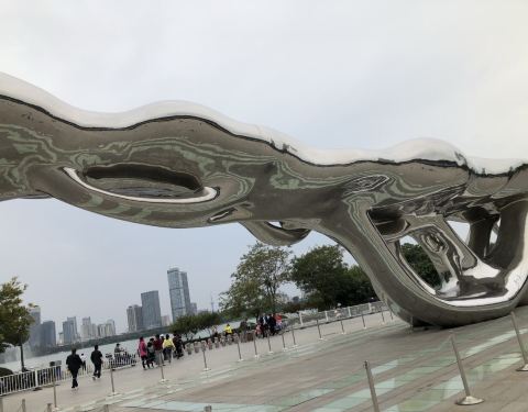 这个广场还是非常大的。好多人都在这个雕塑的前面拍照留念