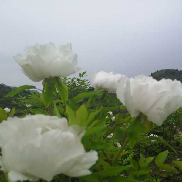 恺之峰山青水绿、牡丹盛开、云雾缭绕