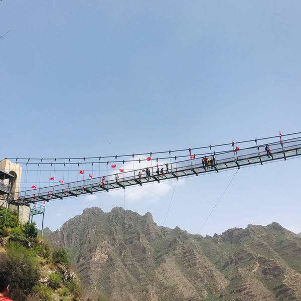 玻璃栈道。划竹筏打水仗是最开心的节目。两个美女 一点都不害怕 下面就是悬崖峭壁。出门就可以看到太行山