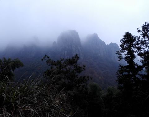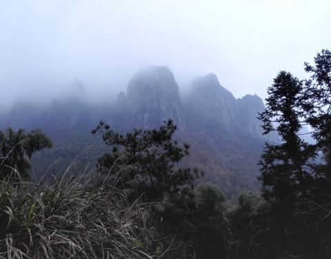 美女峰海拔905米,为浙中著名奇石,于1.5亿年前由中生代燕山运动强烈的断裂、挤压而成,因其形似香炉、颠倒壶瓶,又称香炉石、颠倒壶瓶。从马岭古道岭头到美女峰还有个把小时的路程,均为黄泥山路,崎岖不平。