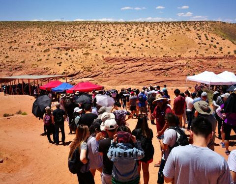 到了羚羊谷景区我赶紧去售票处确认他们的时间,还好景区的时间是没有时差的。佩吉是印第安人的领地,酒店就有一个小的博物馆,里边陈列着印第安人的各种迹象。我真的很爱这些石头,觉得比海还要爱一点由于自驾,一天大部分时间都在车上,路边的风景也成了景点。下一站的目的地是羚羊谷,网红打卡。这里过去是野羚羊的栖息处,因峡谷里常有野羚羊出没而得名。到了羚羊谷,结果我们来错基地了,好在我们的基地在前边不远处。