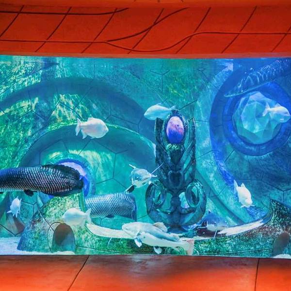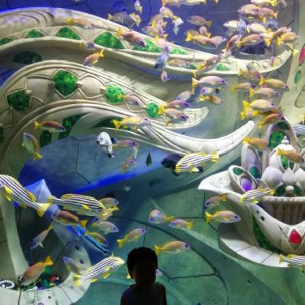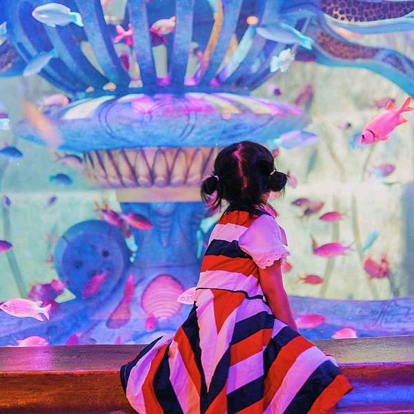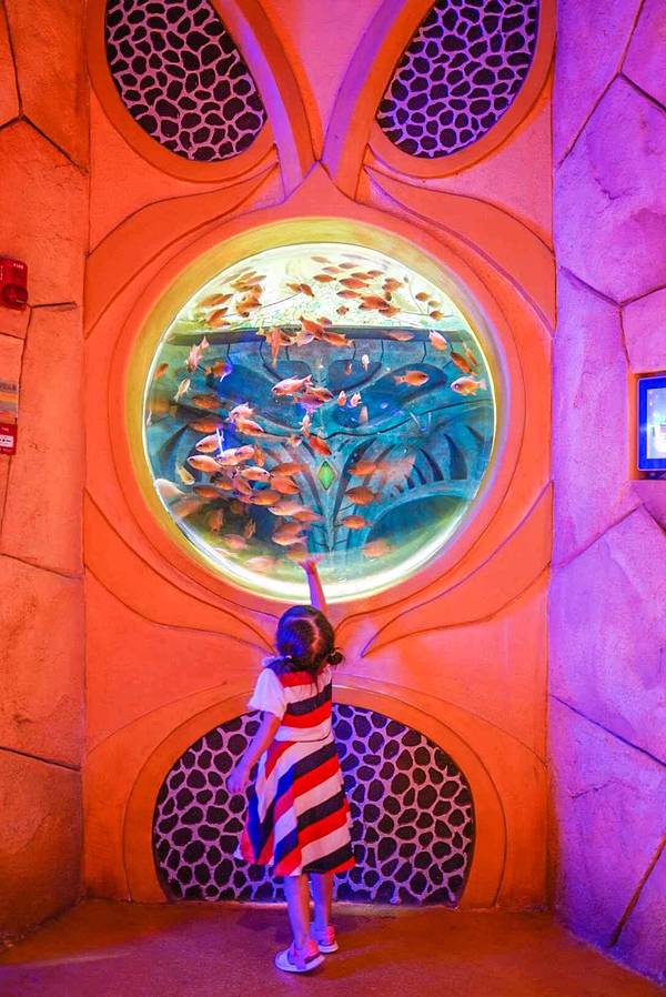 金骆驼 工作人员穿上美人鱼的衣服在水中优雅地游来游去,仿若就是两条美丽的人鱼。⭐可以体验喂食亚特兰蒂斯🌟,一个传说中的高度文明的古国。突然的一天,这个文明古国沉入海底🌊。失落的空间水族馆,就是根据这个传说而建。