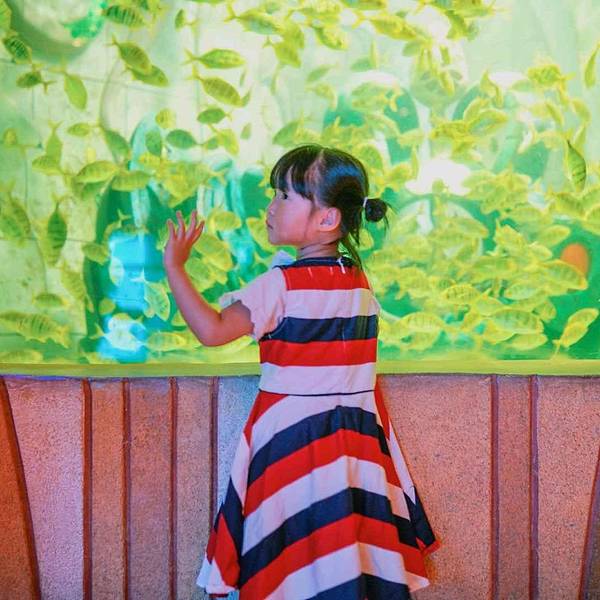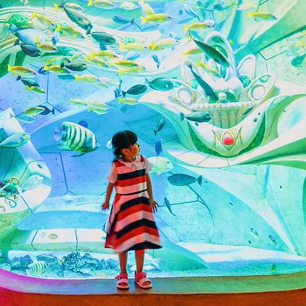 ➡总体并不算太大,上下2层。进入水族馆,首先映入眼帘的就是多姿多彩的鱼宝宝。30个大小各异的互动展示池,汇集了86000多尾的海洋生物,在这里,你可以透过超大的透明观赏幕墙,探索白鲸、鲨鱼、鳐鱼和其它特色海洋生物,与小朋友一起行走在浩瀚的海洋,学习海洋文化,认识海洋生物,每个展示池旁都有注解,可以读给孩子听。