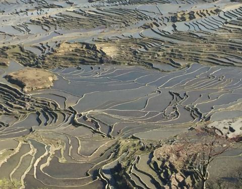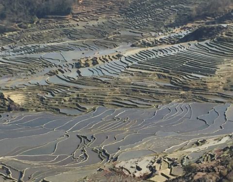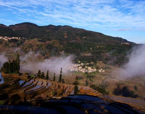 阿者科村,一个非常原生态的哈尼族村寨,红河哈尼梯田申报世界文化遗产时,这里是五个申遗村寨之一,全村只有仅400人,从今年春节以后,这里也收30元门票了。阿者科村是建造在深山里,梯田边的古村落,有着悠久的历史,古老的蘑菇房,和马帮,配着梯田,是不错的画面,曾经被选中作为电影拍摄点。这里的村民淳朴好客,坐在观景平台上看着远方梯田里缥缈的云雾,和这里的老者聊聊他们的生活和历史,是一种惬意的享受。