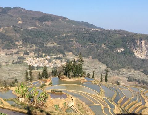 阿者科在公路下面,需要徒步2公里左右,穿过村落,到观景台赏梯田美景。 不需要门票