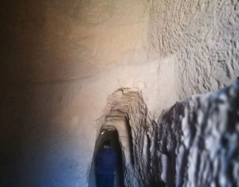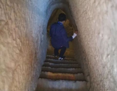 水洞沟景区内最后一个重要景点,有两个不相连的洞,据说这一带的山体里面都是这样的藏兵洞。一定要紧跟着导游,不然听不清讲解。出洞就是红山堡了,然后拖拉机出景区。