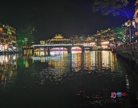 位于凤凰虹桥对面的另一座拱桥,站在这里不但可以看到对面的虹桥全景,还可以在晚上是欣赏到两岸的凤凰夜景