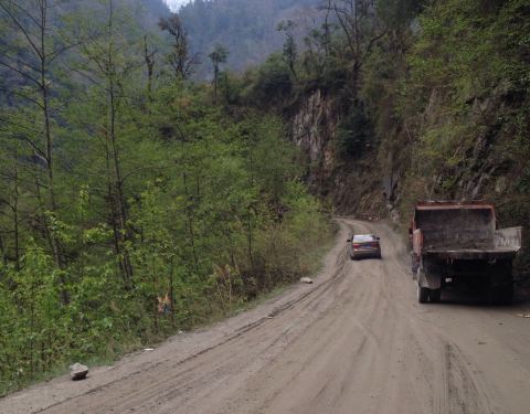 过通麦大桥,便上了川藏线上最为险峻的一段路,素有“死亡路段”之称的排龙天险,这是川藏线最险的一段路,在波密和林芝之间,全长14公里,路仅有一车之宽,雨季时经常塌方或泥石流,另外道路车辙严重,小轿车通过时经常托底,顺利的走这14公里的路也得一个多小时,是川藏线的必经之路,估计明年大桥和隧道建好之后,通行状况会有很大的改善。