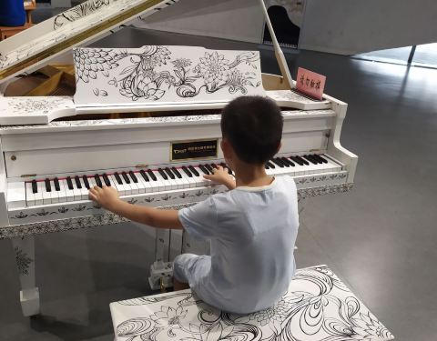 昨天去 办了一个百年钢琴展 一楼是彩绘钢琴 负一楼是百年以上钢琴 有一架钢琴供爱好者体验 两个大学生轮流弹琴 非常棒 孩子也一直跃跃欲试 旁边有梅园餐厅不对外开放 借学生卡刷了 物美价廉的中饭