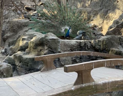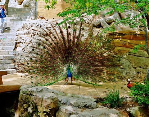 老虎滩海洋公园里居然还有一个鸟语林啊,海洋公园里居然还有那么多鸟正好好看到孔雀开屏了绝对是个好兆头啊这里人不多地方也不大。