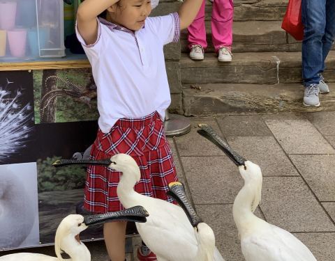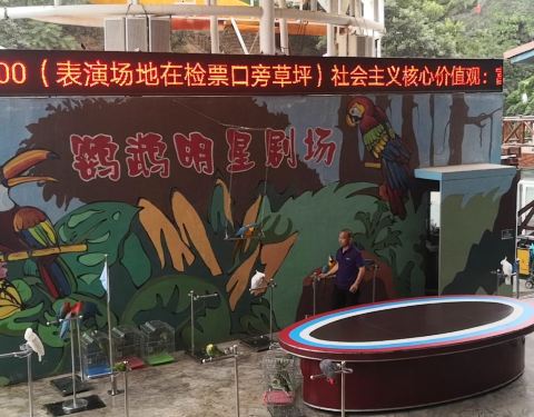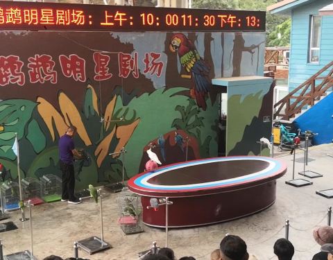 第一次近距离接触这么多鸟,有山上溜达的,水里游的,天上飞的,树上叫的,孔雀特别多,求偶的时候就开屏,很好看。还有鹦鹉表演,鹦鹉不仅会说话,还会轮滑,举重,算算数,踢足球,小朋友都喜欢看。群鸟放飞,...