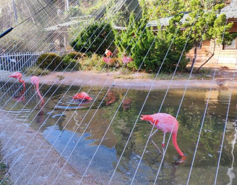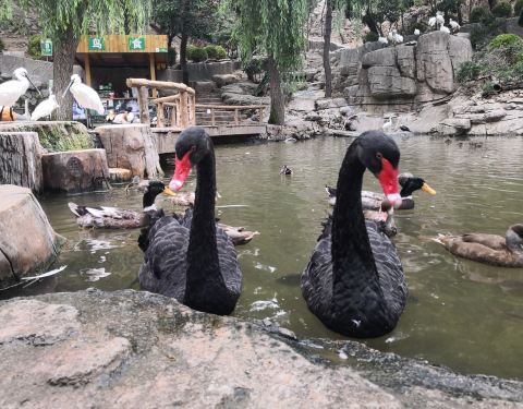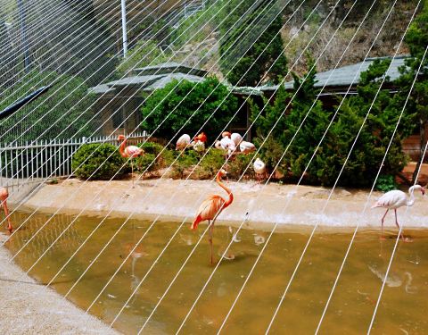 从老虎滩可以坐缆车过来,顺便还能眺望一下海景,省钱的话可以徒步走。鸟语林里很多鸟类都是散养的,可以近距离拍照。这里还有火烈鸟,粉粉的很讨喜