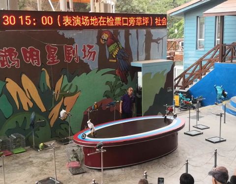 鹦鹉表演也很精彩,压轴戏就是鹦鹉会叼钱,而且能分清大小面值,10元以下看都不看就会飞走(敲黑板,重点
