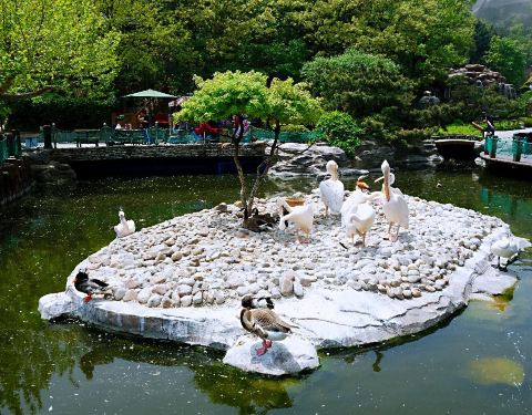 鸟笼内的山石林木取之自然,游人随山间曲经迂回,可与鸟儿亲切“交谈”,回归自然,其乐无穷