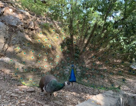 第一次近距离接触这么多鸟,有山上溜达的,水里游的,天上飞的,树上叫的,孔雀特别多,求偶的时候就开屏,很好看。还有鹦鹉表演,鹦鹉不仅会说话,还会轮滑,举重,算算数,踢足球,小朋友都喜欢看。群鸟放飞,可以看到孔雀东南飞的场面,厉害了~