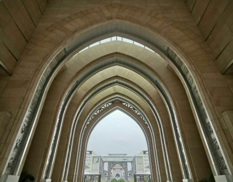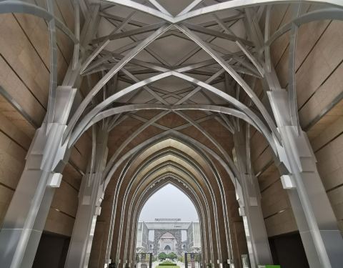 布城的这座清真寺被称为钢铁清真寺。因为这座清真寺80[%]的材料都是用钢铁制成的,包括它的立柱拱顶。甚至是墙壁都是不锈钢,既大气又不可思议,绝对值得进来参观一下。