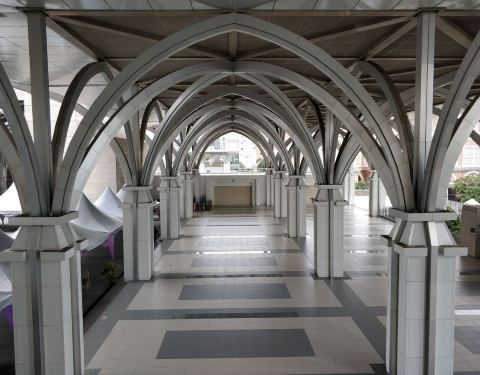 布城的这座青春是因其建筑70[%]以上的部分都是由强化钢构成的,而被称为钢铁清真寺,他耗资2亿8000万令吉,约合3亿3000万人民币兴建而成。2009年竣工,2010年6月10日正式启用,其最多能容纳2万人同时聚礼。