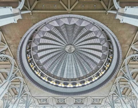这座清真寺是不成一家独一无二的清真寺,因为这座建筑的70[%]以上都是由强化的钢结构构成。可谓是实至名归的钢铁清真寺,据说建造这座清真寺总共花了3亿3000万人民币 真的是一座宏伟的建筑呀。