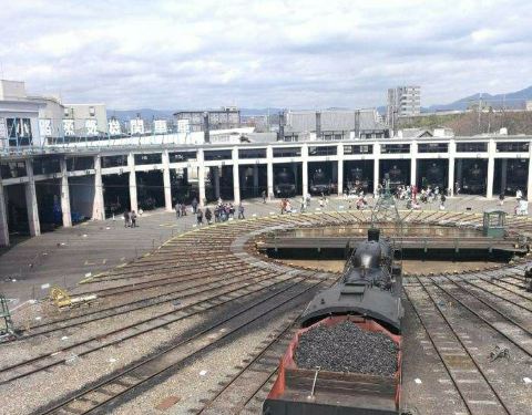 孩子们可以与蒸汽机车来场亲密的邂逅,不仅可以近距离欣赏铁路车辆和工厂,更能在天空露台欣赏京都城市美景