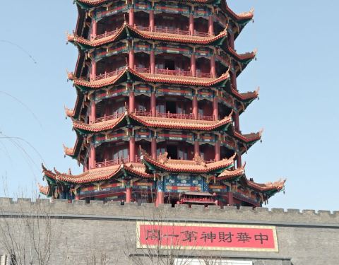 离邢台市1个小时20来分钟的路,不算很远,门口停车位比较多,不收费,进门后就是3处投币游戏场面,有个园子里面没什么内容,还单独售票,没必要进入看,财神阁还是值得上去看看的,一共6层,做电梯上六层,然后再一层层的走下去,每层都有一个财神坐镇,上到六层向下看去,塔下风景尽收眼底,春天去比较适合,温度合适,百花盛开,风景会更好看