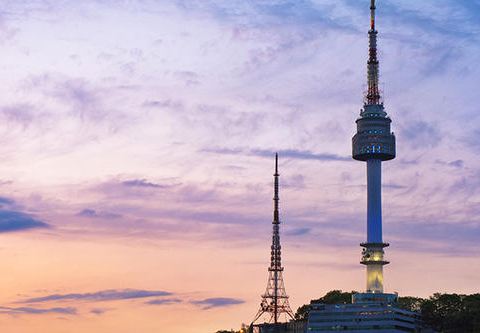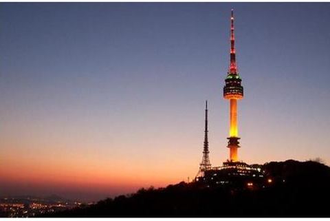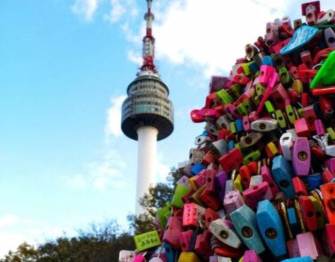 明洞优衣库对面的坐5路循环公交可以直接上首尔塔上,一上去就能看到一个小平台,远眺可以看到整个首尔,二楼观景台是免费开放的注明的爱情锁墙,上去的时候正好是傍晚日落时分,非常非常的美,值得一来。