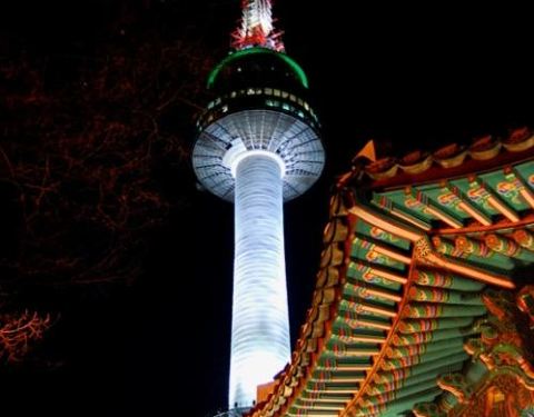 首尔塔的索是我看过最多最美丽的,颜色各异的索挂满了一面墙。夜景视野非常不错,唯一的缺点是秋夜里寒风阵阵,没法停留太长时间,夏天过来可以登山上塔顶,悠闲的看看风景。