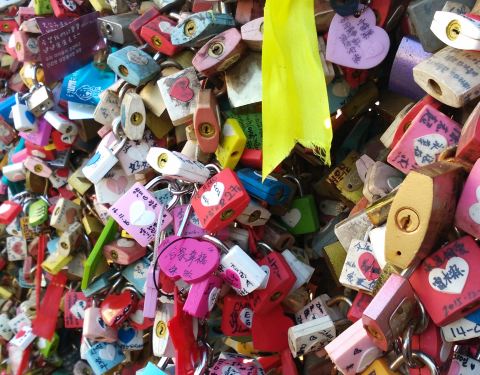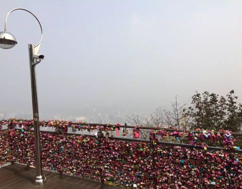 N首尔塔爱情锁墙就在首尔塔的平台上,这里也是多部韩剧的拍摄地。这里的爱情锁墙也吸引了很多年轻情侣打卡,慢慢的爱情锁让这里充满着幸福。没有情人的我来到这里唯有在这里到此一游,拍拍风景,感受一下这里的浪漫氛围。五颜六色的锁拼凑成一幅漂亮的景色。