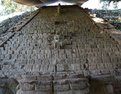 蒂卡尔的四号神殿位于茂密的热带雨林之中,这里长期雾气萦绕,有种神秘的感觉。四号神殿保持得相当完好,一座庙宇建在三层的金字塔上,据说是用来祭祀水神的,而殿下的石碑,刻着许多神秘的符号,更增添了这里神秘的色彩。