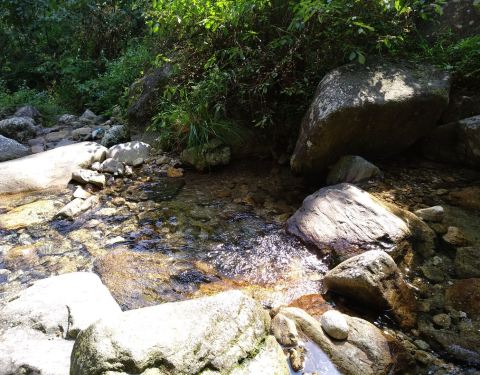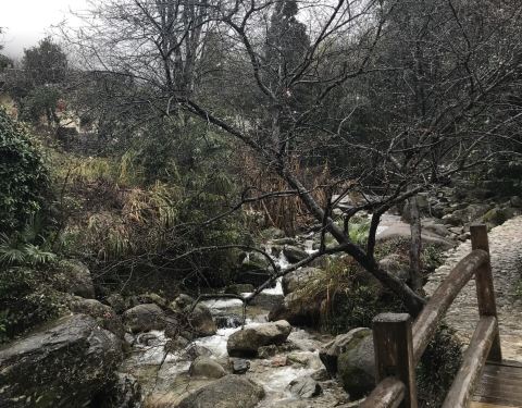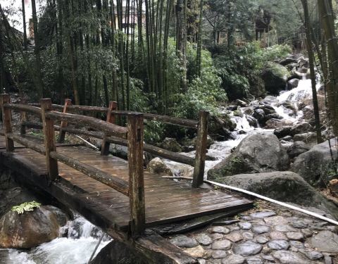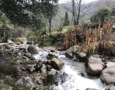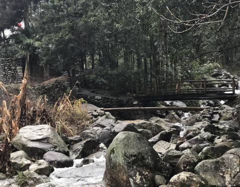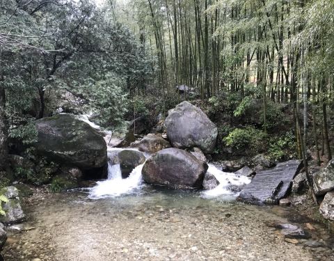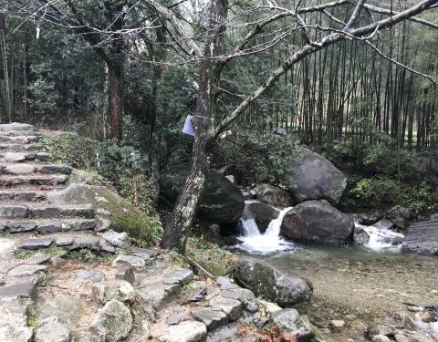 ...个季节没有了樱花,沿着樱花谷的一条小溪,一路徒步穿过竹林,途中潺潺流水,鸟语花香,让人流连忘返