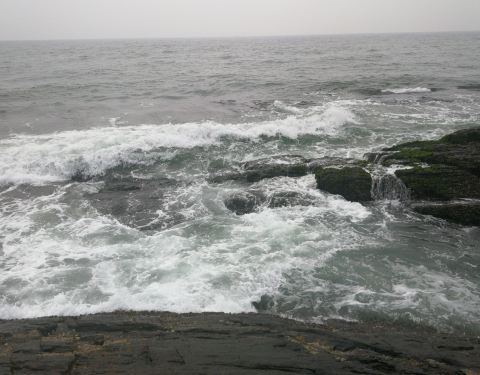 盐洲岛海滩,黑排角因海势位置特殊,必有壮观的海浪冲击,海水冲击大石溅起的巨大的海浪,连绵不断的层层鱼纹型长浪!值得一去的旅行地!