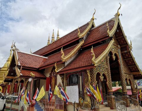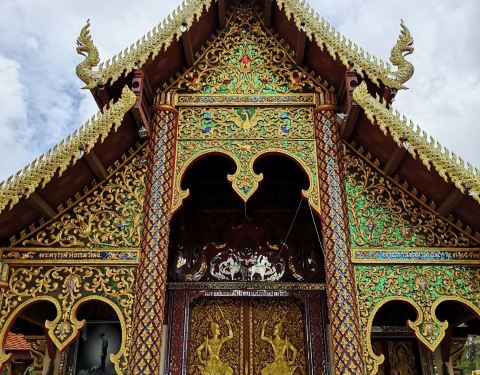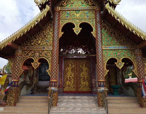 况卡玛寺位于古城北部的一个寺庙,清迈的寺庙,据说有1000多家,寺庙里面还是挺大的,过来的时候里面开了门。 门的那只黄金马特别的亮眼,有一个很典型的泰国佛殿,也有停车场开车过来也是挺方便的,但大殿门口没有开放,不能进去。