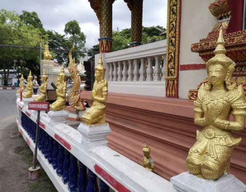 门的那只黄金马特别的亮眼,有一个很典型的泰国佛殿,也有停车场开车过来也是挺方便的,但大殿门口...