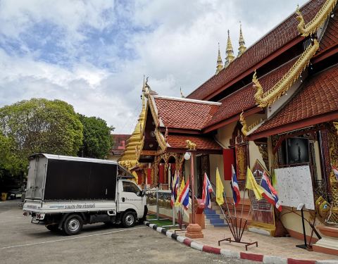 况卡玛寺位于古城北部的一个寺庙,清迈的寺庙,据说有1000多家,寺庙里面还是挺大的,过来的时候里面开了门。 门的那只黄金马特别的亮眼,有一个很典型的泰国佛殿,也有停车场开车过来也是挺方便的,但大殿门口没...