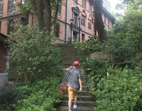 之江大学旧址是一座以前留存的很有历史的古建筑。外面人员来访也以此为背景留念