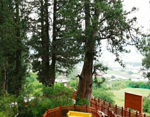 景区建设一般,但景色不错,一大片的柏树林,很是壮观,旁边还有一些野生桃花。