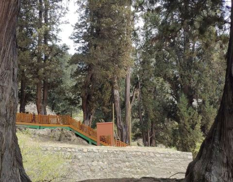 世界柏树王园林位于林芝市巴宜区巴吉村,距离市政府驻地6公里,是离市区最近的“森林氧吧”,平均海拔在3000~3200米之间,属于温带湿润季风气候,全年雨量充沛、日照充足,冬季温和干燥,夏季湿润无高温,年平均气温8.5℃,气候宜人。 世界柏树王园林内众多的巨柏树也称“雅鲁藏布江柏木”,藏语称为“拉辛秀巴”意指神树。其中的一棵巨柏树高57米,胸径5.8米,需十几个成年人合围才能将其抱住,树龄距今有3200多年,被誉为“活的文物”“世界柏树王”。2019年这株巨柏被世界认证机构审核确认为“界树龄最长的巨柏”。 世界柏树王园林是当地藏族群众心目中的圣地,相传古柏树群由苯教祖师顿巴辛饶·米沃切的头发幻化而来,其中被认证的“世界柏树王”为顿巴辛饶·米沃切生命之树、灵魂之树的代表。