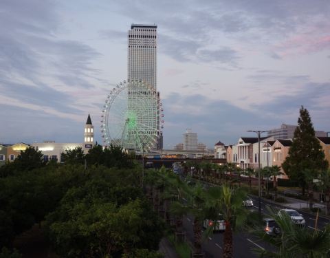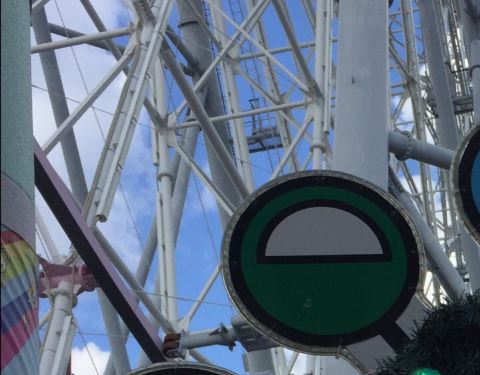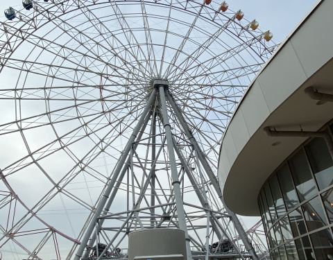 在大阪关西机场一站地的临空奥特莱斯有一个很大的摩天轮,高达85米,在上面是可以看到关西机场的全景,当然还有蓝色的大海,还有机场的跨海大桥。700日元一位,三岁以上就需要买票了。