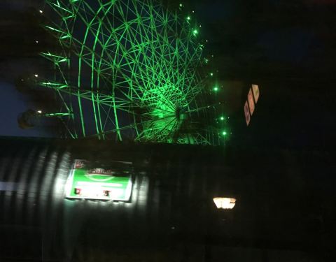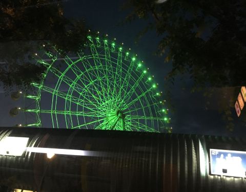 从大阪关西机场出来,坐南海特急线,一站路就到了,出来地铁站就能看到这个摩天轮,远看还是挺漂亮的