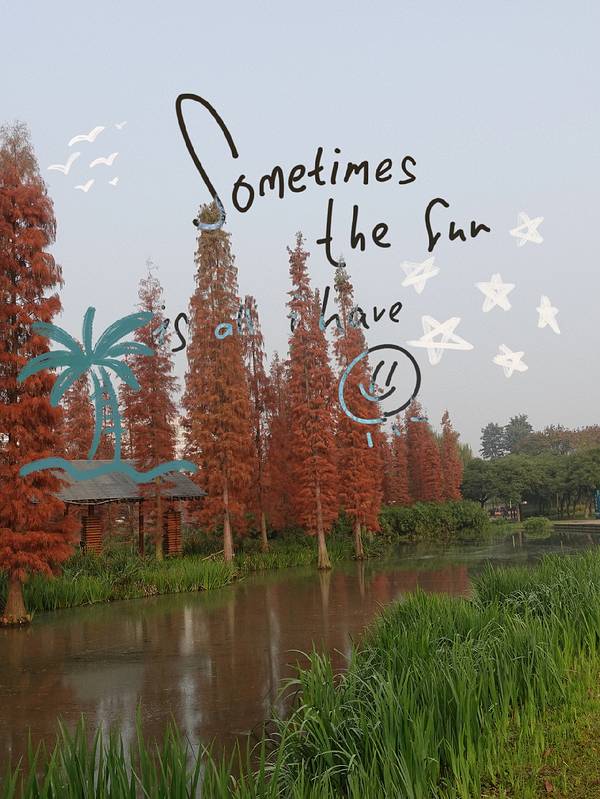 在雍湖公园里,你可以看见老年人在晨练,你还可以看到人们在健身区进行各种运动锻炼,释放身心的压力。简直又美又舒服啊!😁😁