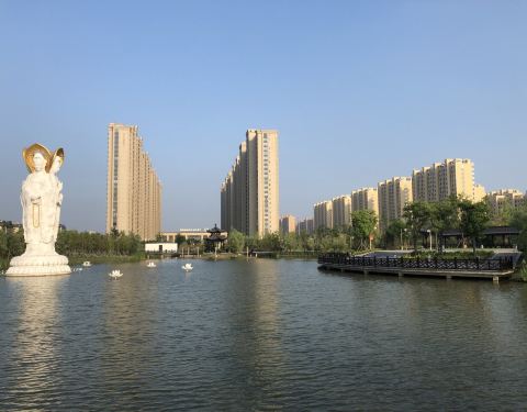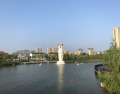 一个新建的小公园。比较有特色的是公园里一尊巨大的观音佛像,佛身站立于湖中,有10多米高,四面分别朝向东南西北四个方向。公园里绿化覆盖率高,门口有专门的停车场。公司免费,随便逛一圈大概也就20-30分钟。