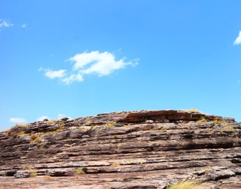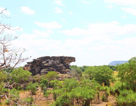 Ubirr是卡卡都的核心景观,这里在一片一望无垠的空旷原野上,突兀着几块巨大的岩石,经过数万年的风化
