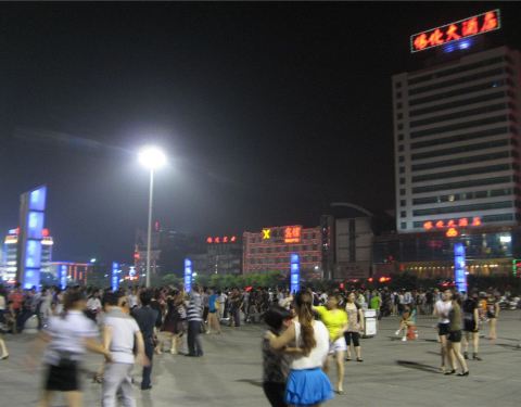 整个怀化火车站是湘西的重要交通枢纽 过了怀化就出了湖南了 整个怀化站的站前的广场也很大 比地平线要高 有快速公交等基础设施 晚上的时候这里就是大妈们的天下了 各种广场舞