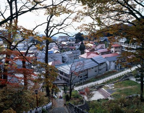 山形县的藏王温泉位于海拔800米的山上,据发现至今已有1900多年的历史,属于强酸性的硫磺温泉(就是味道比较大的那种),有促进血液循环、美肤等功效。 紧邻人气颇高的藏王滑雪场,在冬季游客络绎不绝。温泉街上有着八十多家温泉旅馆、酒店、民宿,众多餐厅和礼品店。