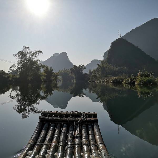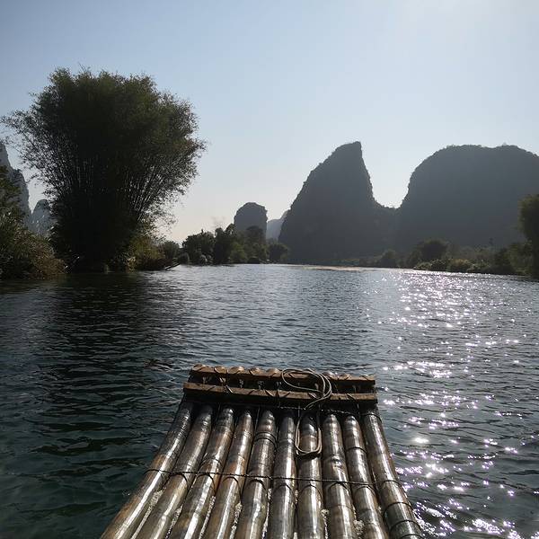看好日出,吃好早饭准备滴滴打车去骥马码头,滴滴显示15元,结果套路太深,第一个司机打电话来说我处在交通管制地区需要另外加20元,我不同意,他让我去平台取消,我取消后又打,结果第二个司机开口要加30元,我又取消,重新打,估计他们司机都在一起的,后面都没人接单。我不停的打,最后来了位良心司机说要另加五元,那我也还是乐意总共花了二十元。从骥马码头开始漂,有可能是上午还早,就我们俩承包了整条骥马码头到水厄底码头这段遇龙河竹筏漂游,到了水厄底才又见到几个游客漂流好酒店里借了辆电瓶车50元(应该比西街贵)两个人准备十里画廊兜一圈,想象中的十里画廊是很美的,结果有点尴尬😓