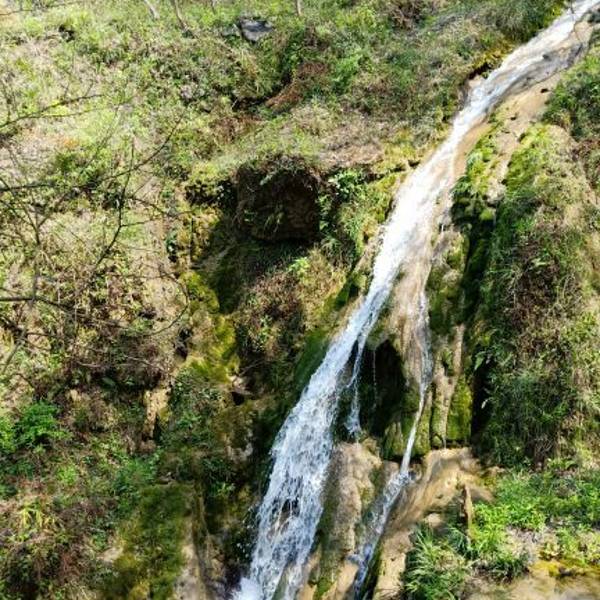 基本上是人工因势利导地开发出来的一个景区,沿途一处处加了许多噱头,以迎合参观者的喜好,个人觉得经营者是费了番心思。有瀑布、有水帘洞、有芍药园等。山顶上有高空步道行走、高空荡秋千等。从山下坐滑道滑下挺有意思。