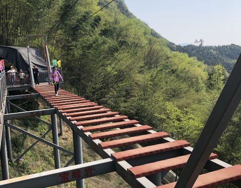 基本上是人工因势利导地开发出来的一个景区,沿途一处处加了许多噱头,以迎合参观者的喜好,个人觉得经营者是费了番心思。有瀑布、有水帘洞、有芍药园等。山顶上有高空步道行走、高空荡秋千等。从山下坐滑道滑下...