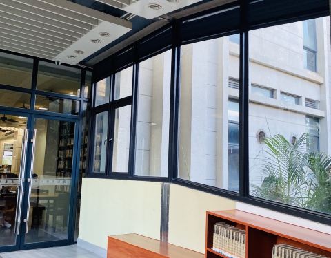 海南省图书馆像是在森林中的图书馆一样,图书馆外围绿化很棒,馆外也有椅台与咖啡馆...进馆看书需要刷借书卡或是身份证,馆内也是很清静,看着窗外的林荫更是让人心情放松...