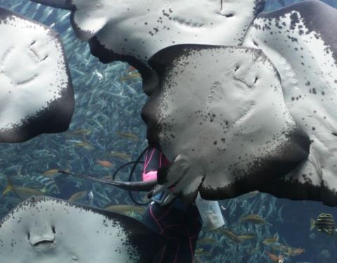 水族馆不大,展出内容也不多,但比较惊艳的是里面有一个潜水员表演,潜水员会通过撒饲料的方式人工展现出沙丁鱼风暴,我还没见过其他哪个水族馆有这个表演的,就冲这个人工的沙丁鱼风暴也值得一去!